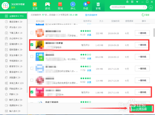若是要卸载多个软件,可以同时选中后,单击页面右下角的“一键卸载”,可以执行多个软件都被卸载的使命。