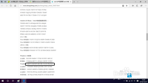 点击后查看是否有产物密钥各版本,若是有选择你的电脑上是哪个系统版本,在这电脑上安装Windows10专业版,所以选择产物密钥专业版产物密钥。