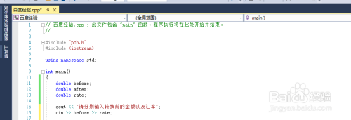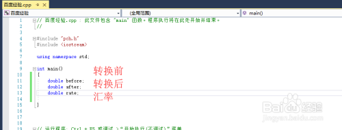 然后我们在本家儿函数里,首先建立三个双精度型的变量,别离用来存储转换前、转换后以及对应货泉转换之间的汇率