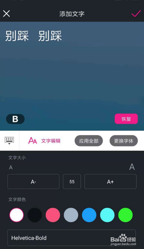 点击文本,可以按照视频的内容,点窜文字的颜色,主要的语句,也可以将它放年夜,如许更能经由过程文字,升华视频中的感情,最后不要健忘再换一个合适的字体。