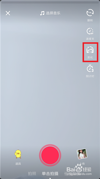 点击后会打开录制界面,在录制界面中找到右边的【美化】选项并点击该选项。