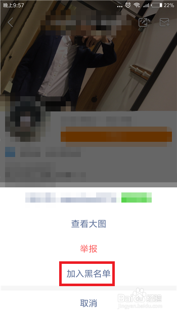 点击后会鄙人方呈现一个界面,找到此中的【插手黑名单】选项并点击,如许就不克不及私信我们了。
