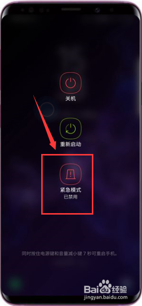 再关机界面点击告急模式,如下图所示