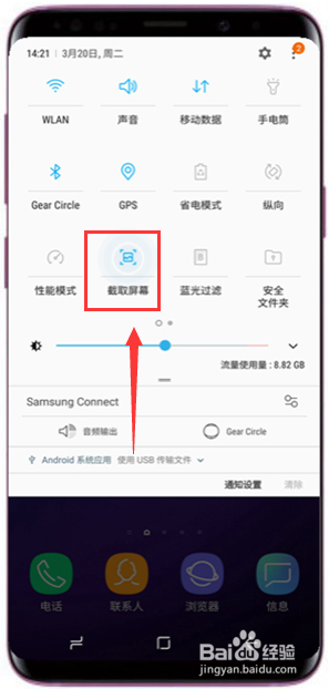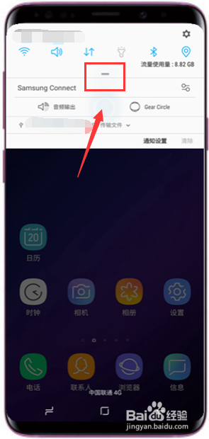 或者从顶部滑动屏幕,调出状况栏,如下图所示