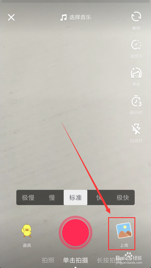 可以自行拍摄视频,这里点击右下角的“上传”。