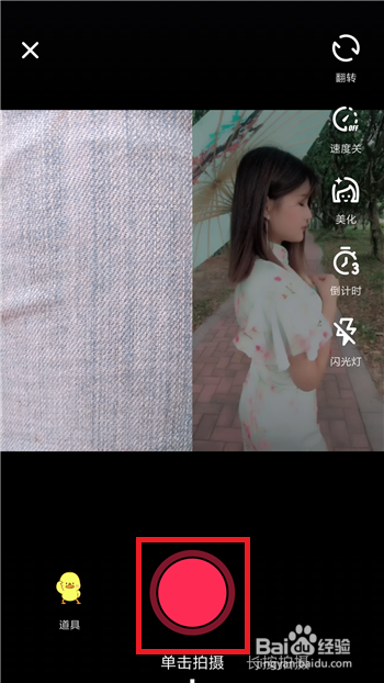 如许就会进入到合拍视频的界面了,点击底部的录制按钮就可以起头合拍了,合拍竣事后保留这个视频到火山小视频中发布即可。