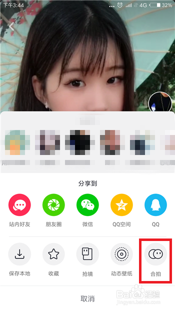 点击后鄙人方呈现的界面中就能看到【合拍】选项了,点击这个【合拍】按钮。