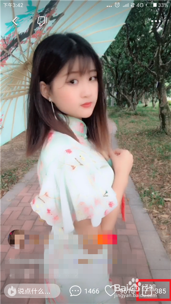 打开仗山小视频并点击打开想要合拍的视频,在视频的播放界面中点击右下角的【转发】选项。
