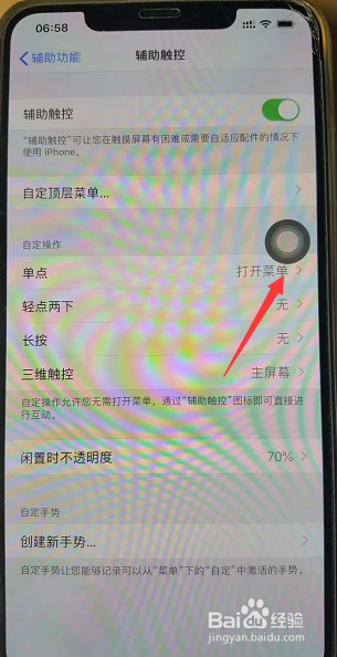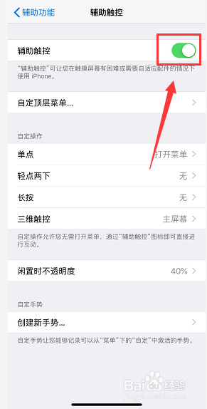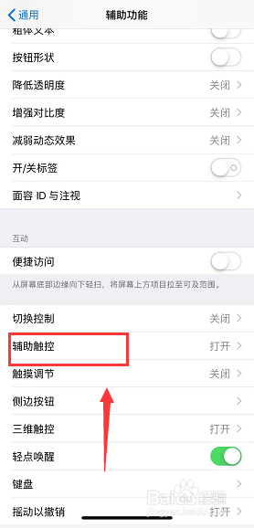 在辅助触控界面,将辅助触控开关封闭,如下图所示