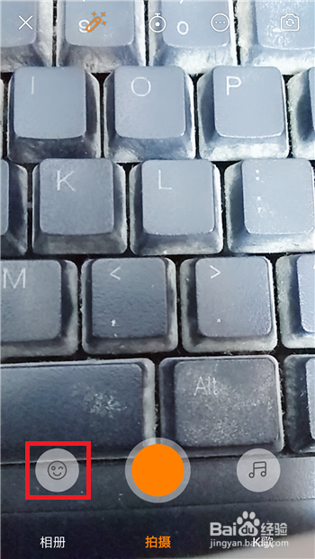 点击后会打开快手的录制界面,在左下角的位置点击【道具】选项,如图所示。