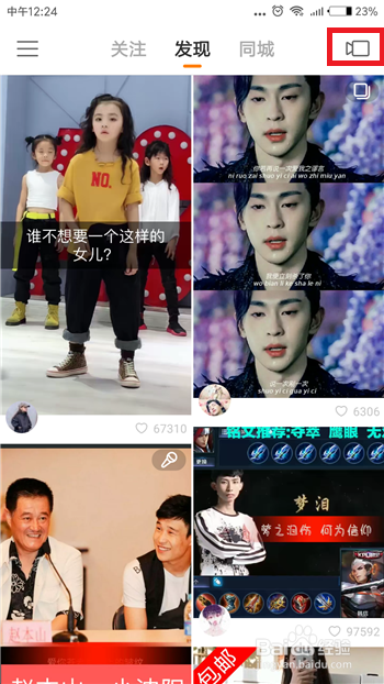 快手变形金刚特效的视频可以直接在道具中利用拍摄,打开手机中的快手后,在右上角点击【拍摄】按钮。