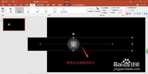 选中整个矩形,在动画菜单栏中选择添加动画中的自界说路径,然后选择一个标的目的右的路径动画;调整好动画路径,单击预览动画结果,一个操纵渐变填充做当作的聚光灯扫描动画就完当作了。