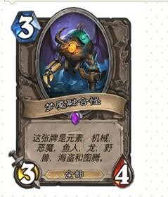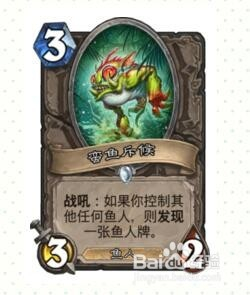 3费只有2/4身段,站场还不错,后期这张卡根基可以铺一波鱼人了,前期对面若是不解,就是年夜量的过牌;