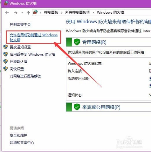 若是你不想封闭Windows系统防火墙软件的话,那么我们还有一个折中的法子,那就是点击页面左侧上方的“许可应用或功能经由过程Windows防火墙”选项。
