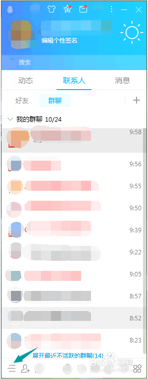 接着,在QQ的本家儿面板界面,点击左下角的三条横线的图标,会弹出一个窗口。