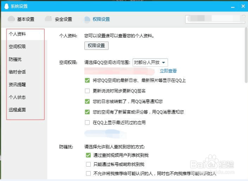 接着,点击权限设置,你会进入响应的界面中,在界面左侧,你可以看到在当前界面你能执行的所有操作。