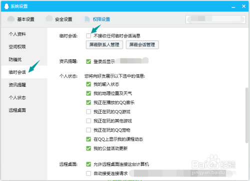 泛泛我们利用QQ城市加很多多少的群,而有些人看到你在群里措辞,会直接找你私聊,给你发告白,可是这时你可能正在忙工作,你就会感应很反感,怎么能避免这种环境发生呢,其实你可以封闭QQ的姑且会话功能,今天小编就给大师讲一下怎么封闭QQ的姑且会话功能。