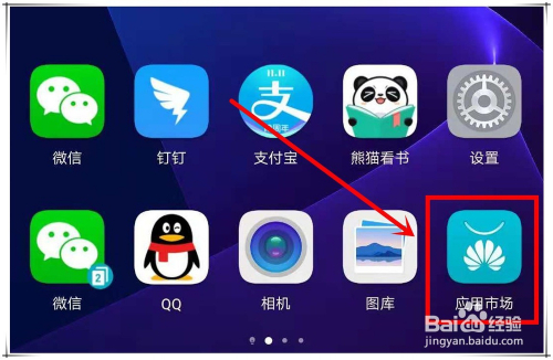 安卓系统以华为手机为例:打开手机,在手机桌面上找到“应用市场”选项,点击进入。