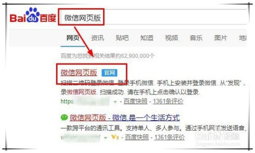 若是要在电脑上利用微信,有两种法子,别离是利用微信网页版和微信PC版。首先讲网页版,要利用网页版可以直接在浏览器中输入网页版的网址(很轻易记的),也可以百度微信网页版,打开网页版网页。