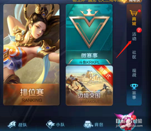 来到游戏本家儿界面后,我们点击屏幕右侧的活动。