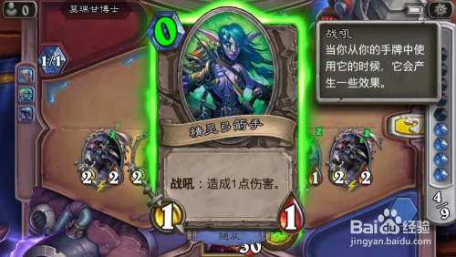 打出1张精灵弓箭手,射标的目的此中一个恩佐斯的触须侍从,激发亡语,覆灭所有侍从,过关。