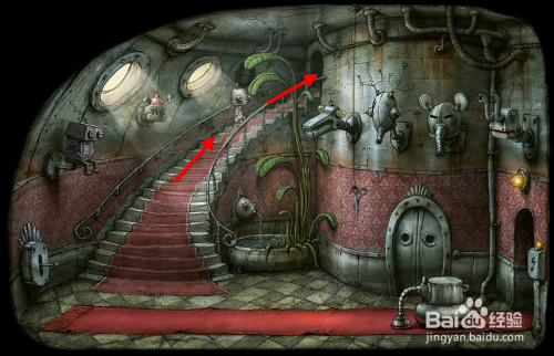 从坐便器那边的洞钻出来,沿着年夜厅二楼楼梯往上走。