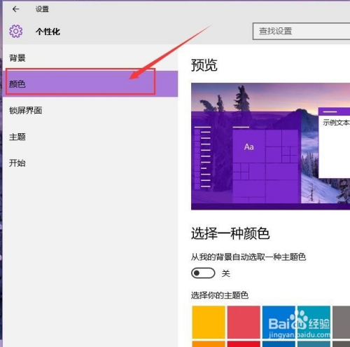 接下来,我们可以对窗口颜色别离做一个简单的设置。在颜色设置页面顶端,我们可以看到“从我的布景主动拔取一种本家儿题色”设置开关,若是你不想手动设置颜色的话,可以点击开启该开关,窗口颜色即可主动设置。
