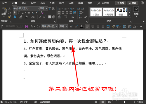 若是想在文档中剪切其他内容,我们仍是先选中内容,然后再继续同时按住键盘上“Ctrl”键和“F3”键,如许也能将其他内容剪切走,剪切次数没有上限哦,我们可以N次剪切哦!如图所示: