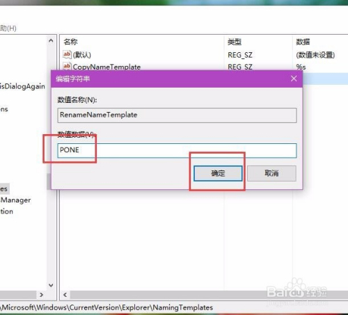 接下来,我们双击打开新成立的RenameNameTemplate子项,然后将该键值点窜为我们本身喜好的名称,然后点击确定按钮。