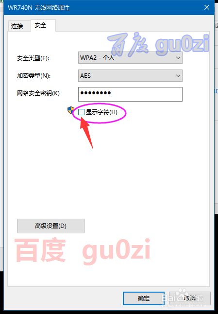 这里就是我们的方针了,默认环境下平安密钥是·······的形式,只要勾选 显示字符,就可以查看WiFi密码了。