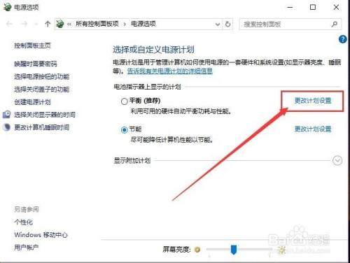 打开节制面板设置页面之后,我们在节制面板中找到“电源选项”设置子项,单击打开电源选项设置页面。在电源设置页面中,点击“更改打算设置”选项。
