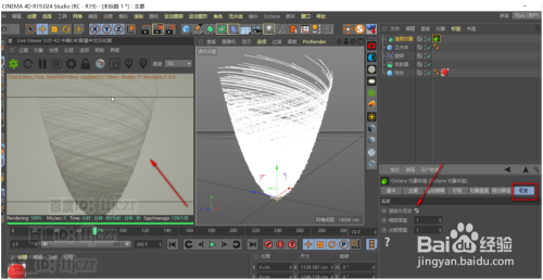 选中追踪对象,给它添加Octane对象标签;在OC对象标签的选项中,点开毛发选项;勾选衬着为毛发。再给追踪对象添加红色材质,此时可以看到oc衬着视窗中显示出了粒子的活动轨迹。