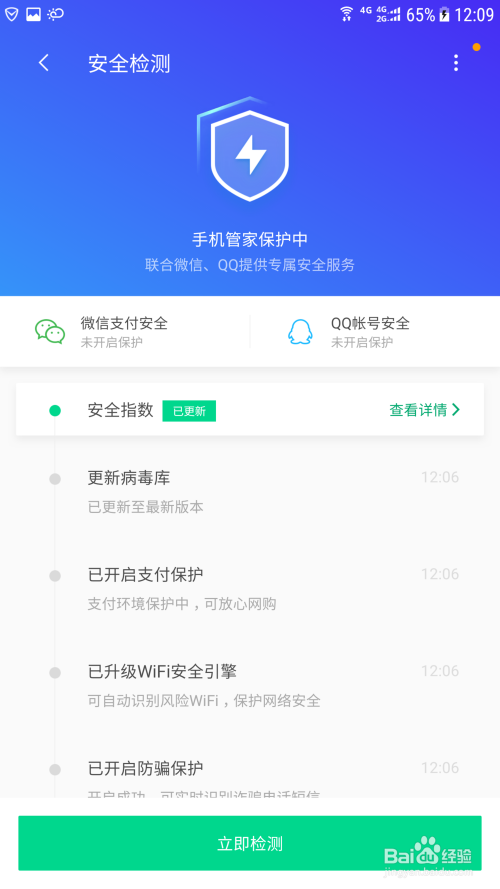 打开手机里面的手机管家,然后选择下面的平安检测功能