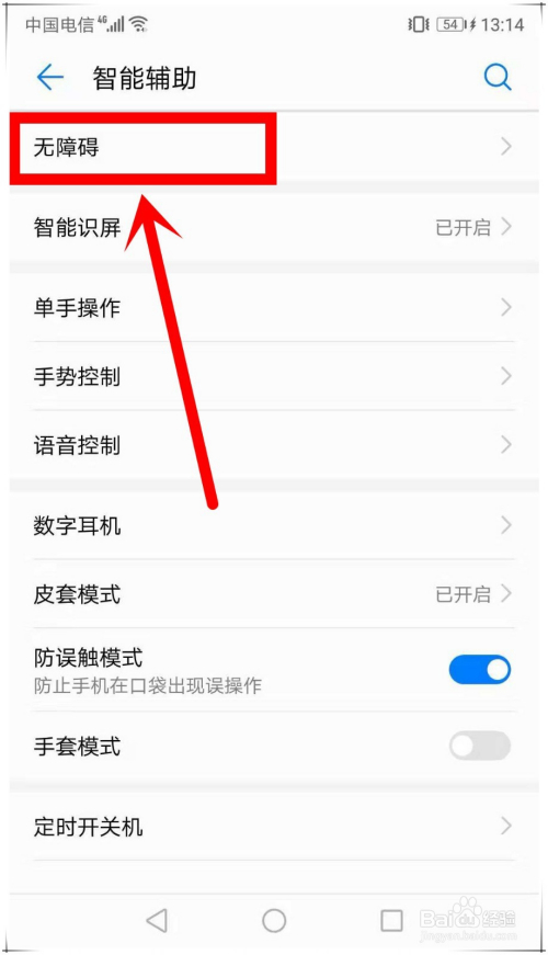 在“智能辅助”页面,点击进入“无障碍”设置页面,在此中可开启无障碍功能。
