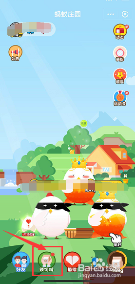 在蚂蚁庄园首页点击下面的领饲料,如下图所示