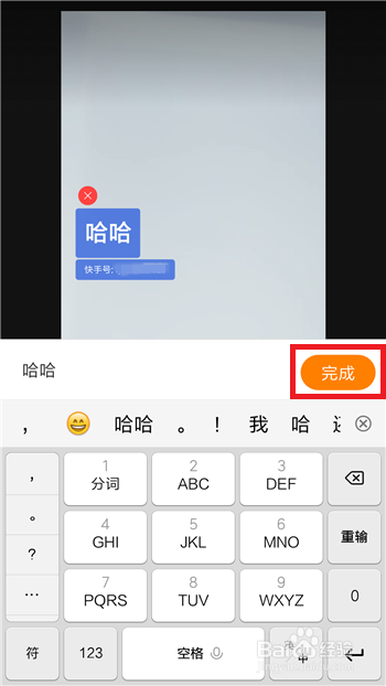 点击后会在视频中呈现快手号了,然后我们还可以设定文字,输入好后点击【确定】按钮。