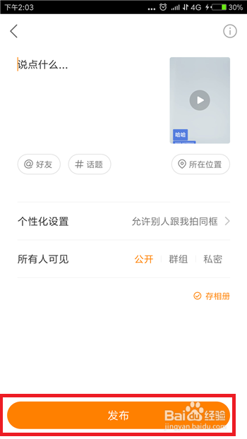 最后在发布界面的左上角的视频中可以看到了快手号,如许店点击【发布】就可以了。