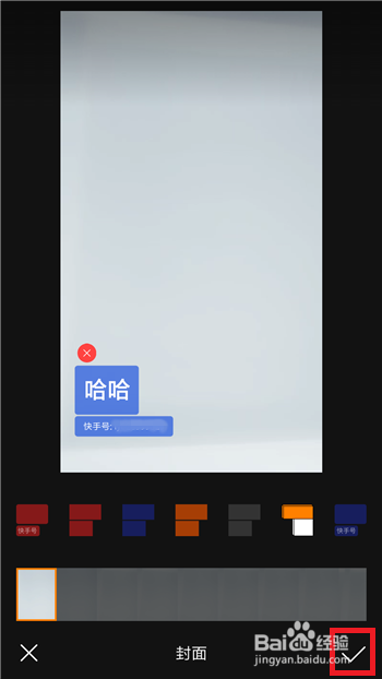 如许返回到封面中就可以看到显示快手号了,当然我们可以上下移动,小编移动到了左下角,然后点击【✔】选项。