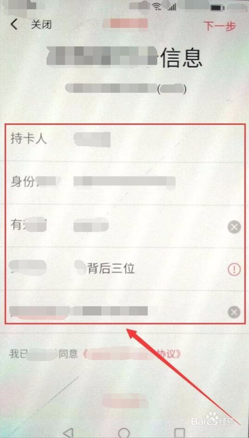 授权银行卡信息窗口中,完美小我信息,注重填写信用卡有用期和平安码。