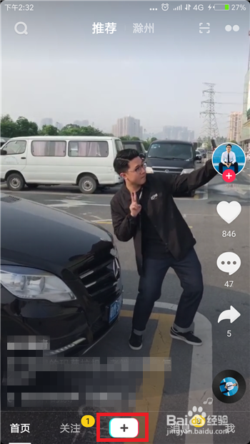 抖音红包雨视频可以直接在抖音中拍出,在首页中点击【+】按钮筹办录制视频。