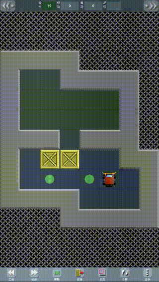 直接跳到第19关,两个箱子,需要把箱子在上面空间里面转一圈,再推下来暂存于右侧空间。