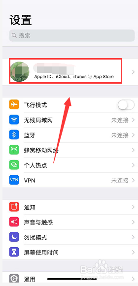 点击你的apple ID,如下图所示