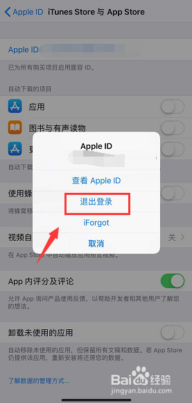 选择退呈现有的apple ID,如下图所示