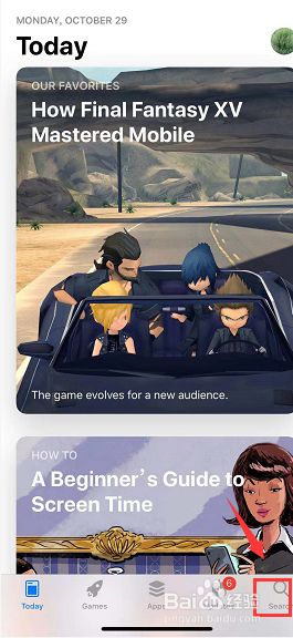 进入app store ,点击搜刮按钮,如下图所示