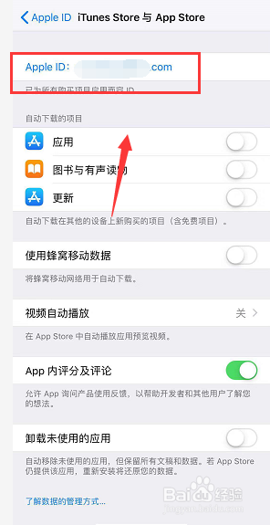 进入账户,点击iTunes store与appstore,如下图所示