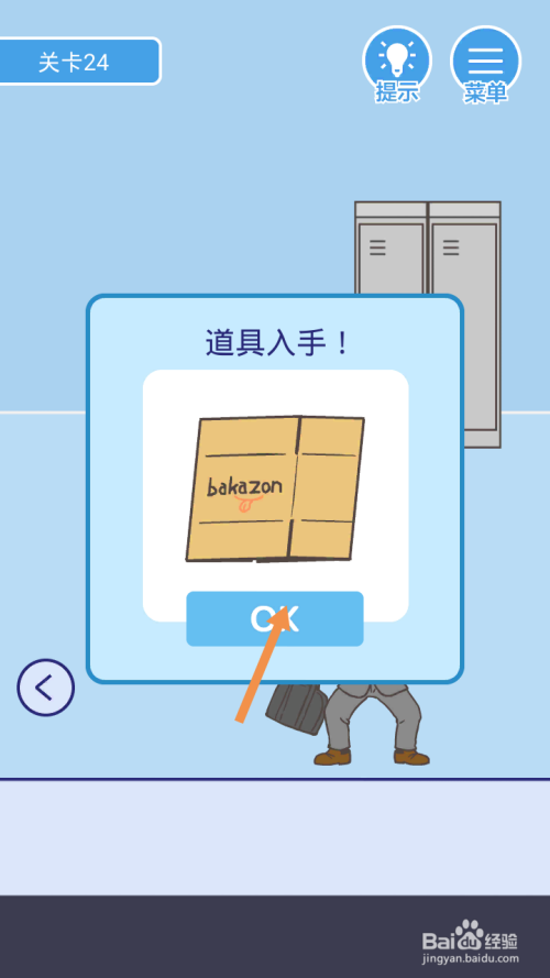 获得纸箱后,点击标的目的左箭头到左边去。