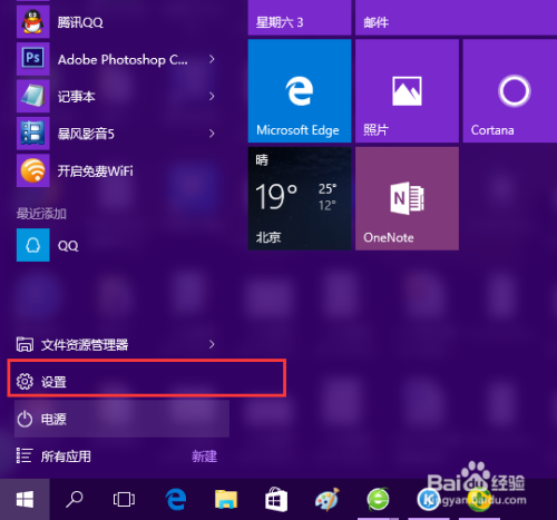 首先,请大师点击Win10系统中的开始菜单,在开始菜单中弹出的页面中,点击选择“设置”按钮,打开Win10系统设置应用。