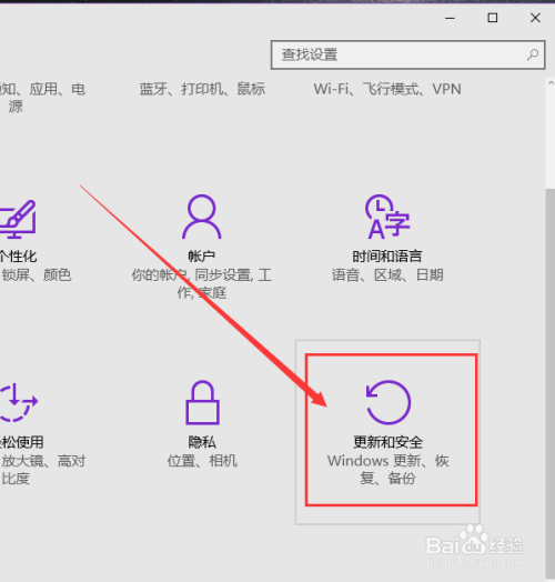 在Win10系统设置应用界面中,点击页面中最后一项“更新和平安”选项,打开Win10系统更新页面起头筹办更新系统。