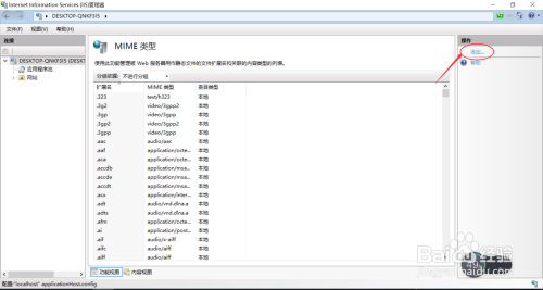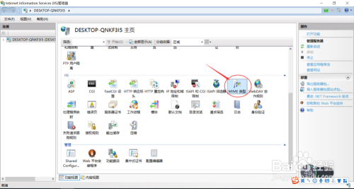 打开办事器IIS办理器,找到MIME类型,如下图所示: