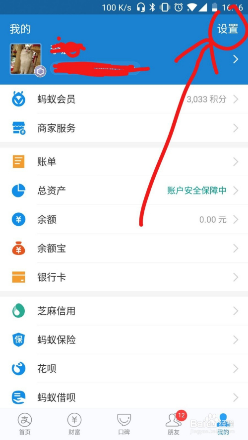 首先打开你的付出宝,然后再手机的右上角找到设置功能点击设置